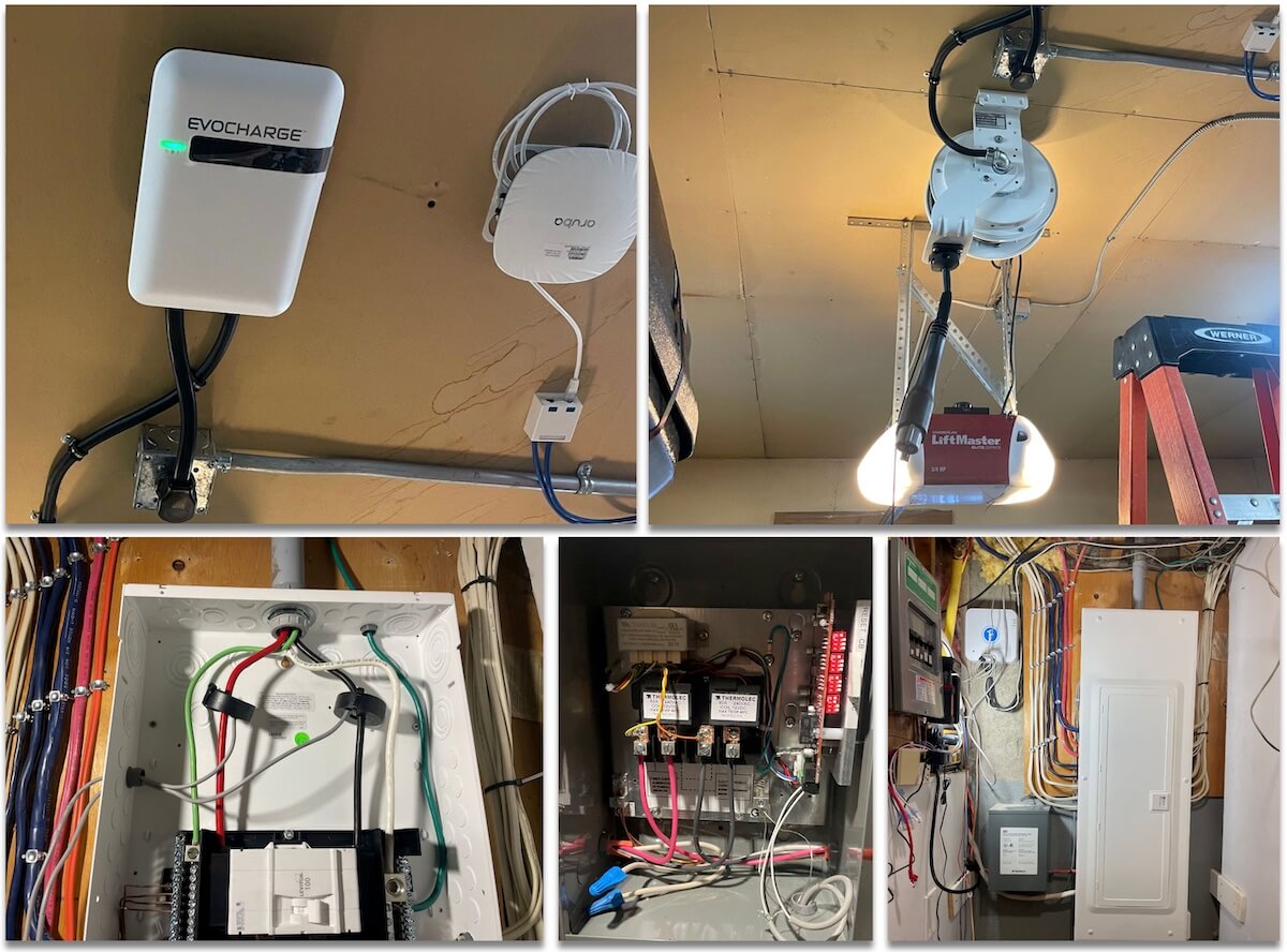 Charger Location: The client’s garage was space limited and he wanted to be able to easily charge a 2nd vehicle in the future with the same charger so we came up with the idea of installing the charger on the ceiling.